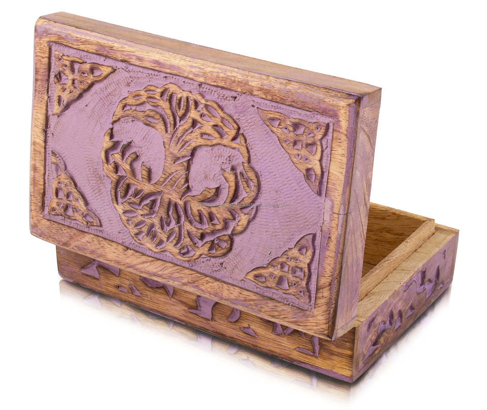 Decorative Carved Wooden Boxes Home Office Locking Wood Storage Hinged Lid Keepsake Carved Wooden Box