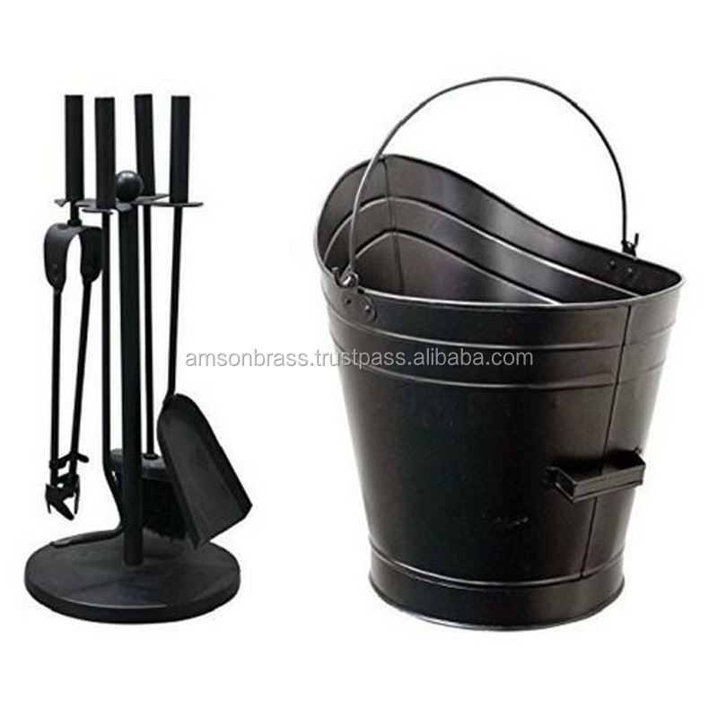 Seau à charbon décoratif Seau de stockage de charbon en fer en métal enduit de poudre noire Seau à charbon solide ancien avec couvercle