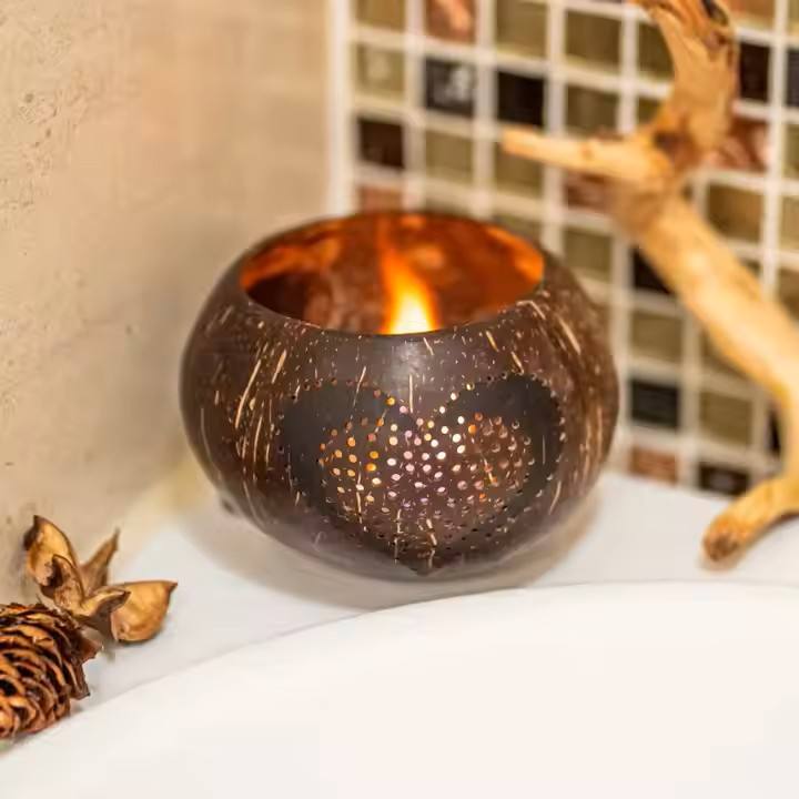 Decorative Coconut Candle Holder Handmade Tealight Stand Eco Friendly Room Decoration Small Unique Christmas Gift Modern