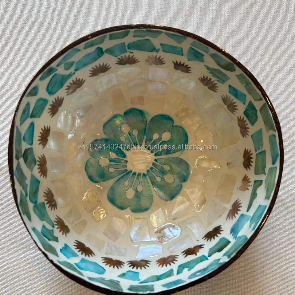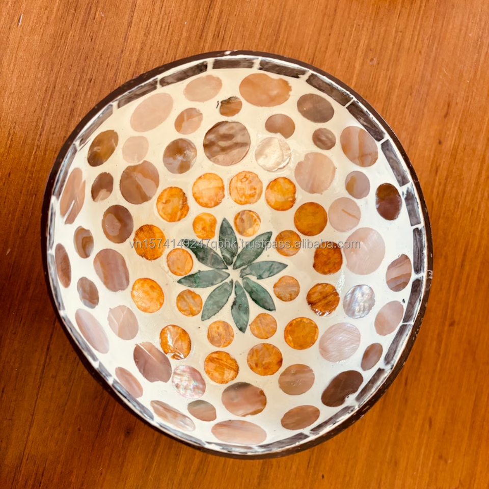 Bol décoratif en coquille de noix de coco avec nacre Bol en coquille de noix de coco du Vietnam Artisanat pour la décoration intérieure Marque MTH Vietnam