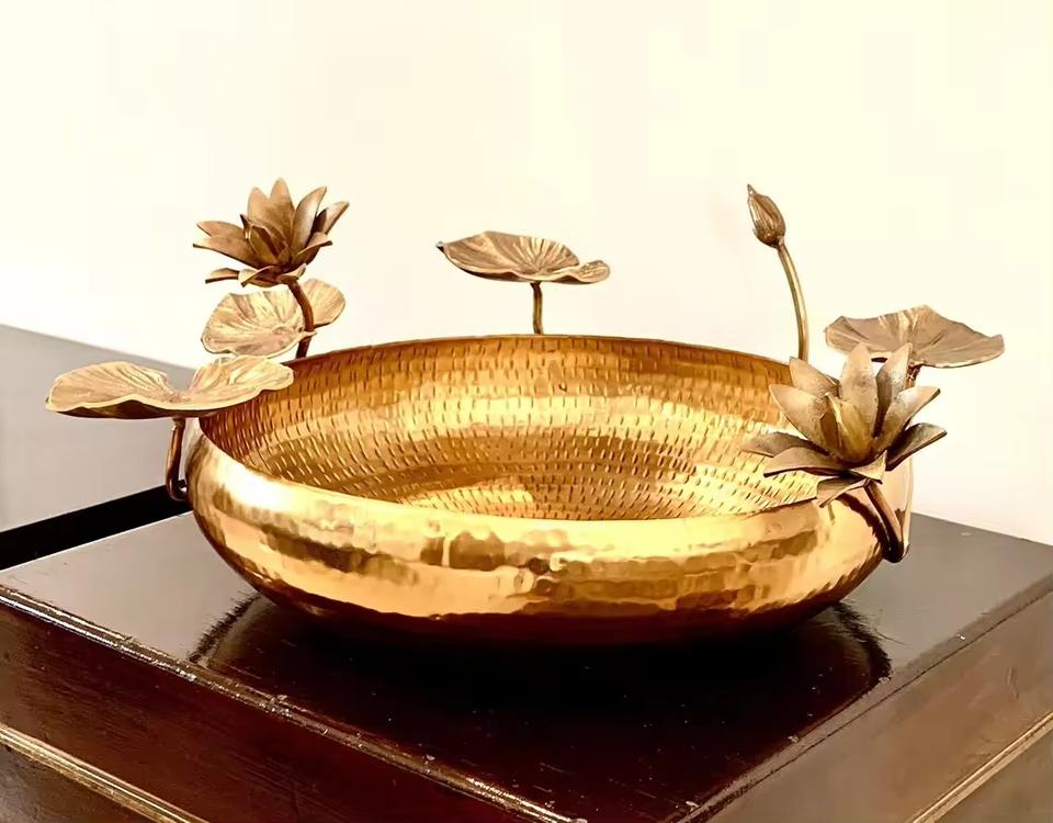 Bol de service décoratif en cuivre pour fruits Bol à fruits en métal martelé et doré de fournisseur indien