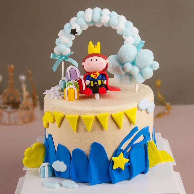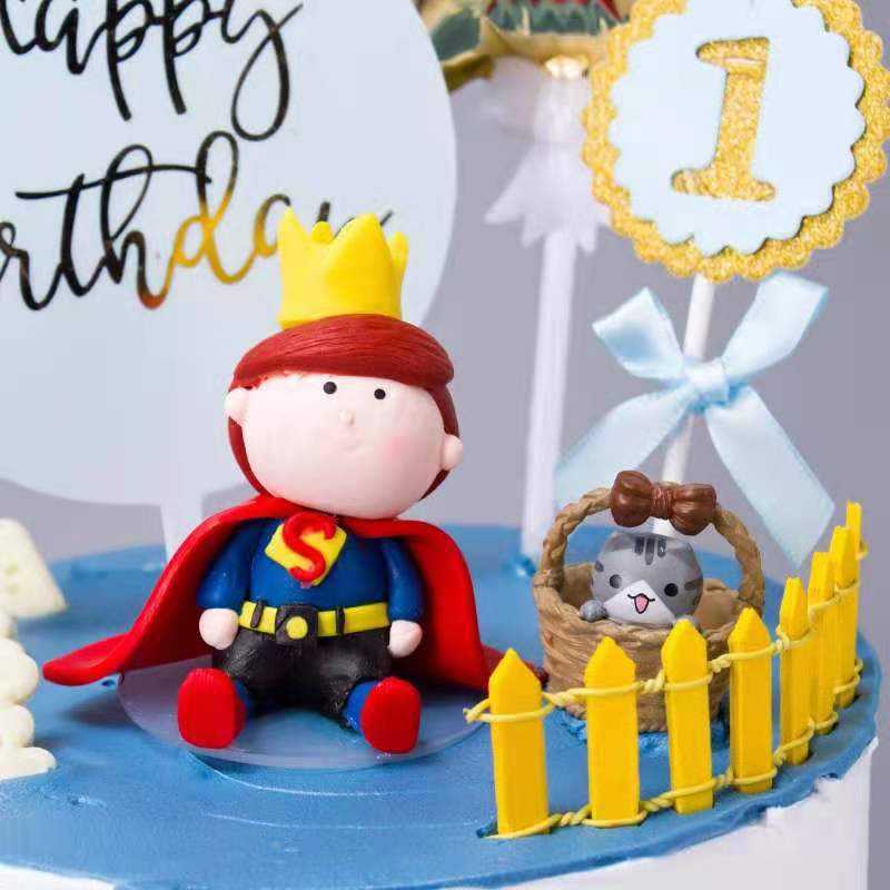 Couronne décorative Petit Prince Argile Polymère Dessin Animé 3d Enfants Anniversaire Insertion Fondant Dessert Bar Gâteau Topper Décoration