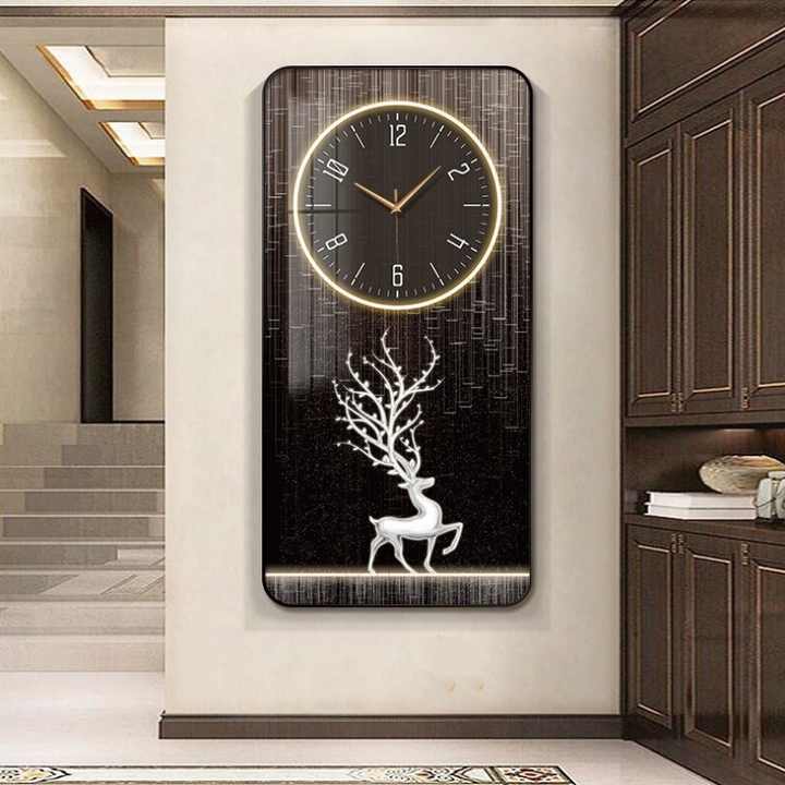 Horloge décorative en porcelaine et cristal, peinture LED, motif élan sur fond noir, pour une élégance intemporelle