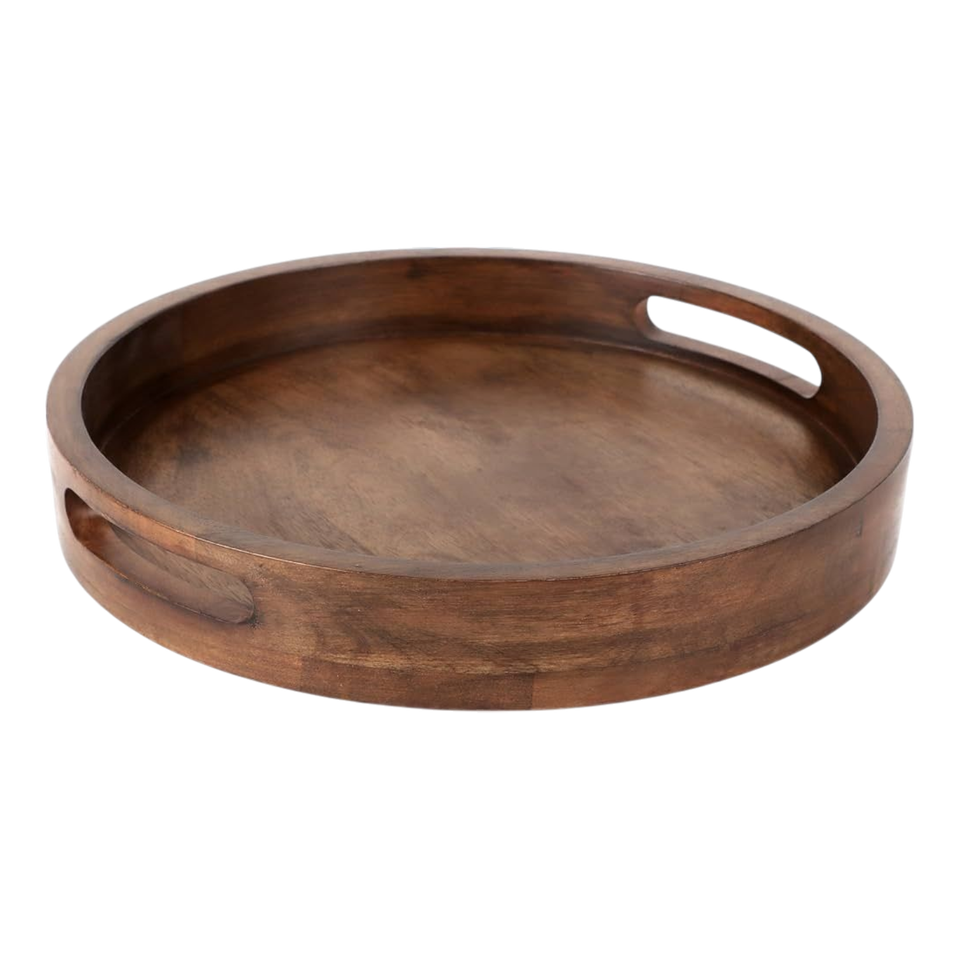 Plateau en bois de forme arrondie, design décoratif, idéal pour la décoration, les cadeaux, la décoration intérieure et comme centre de table.