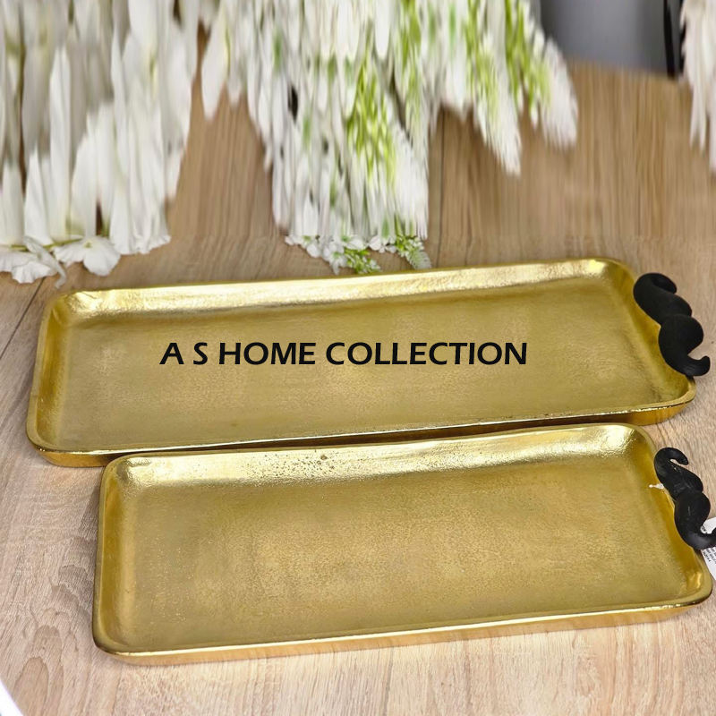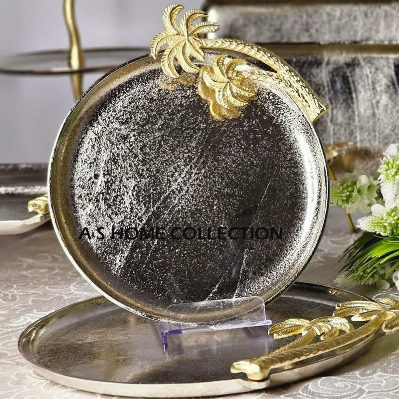Plateau à dessert décoratif avec poignée en forme de feuille, plateau en aluminium moulé argenté, plat de service polyvalent, métal, meilleur prix