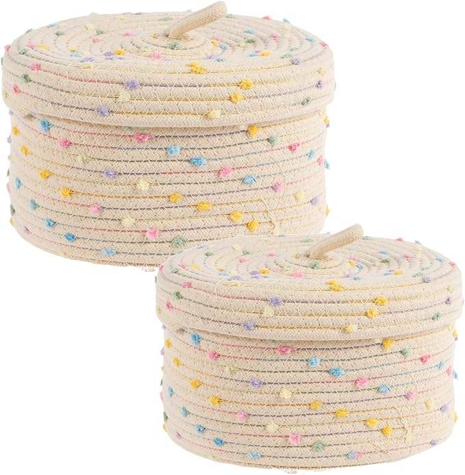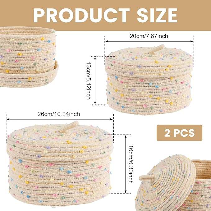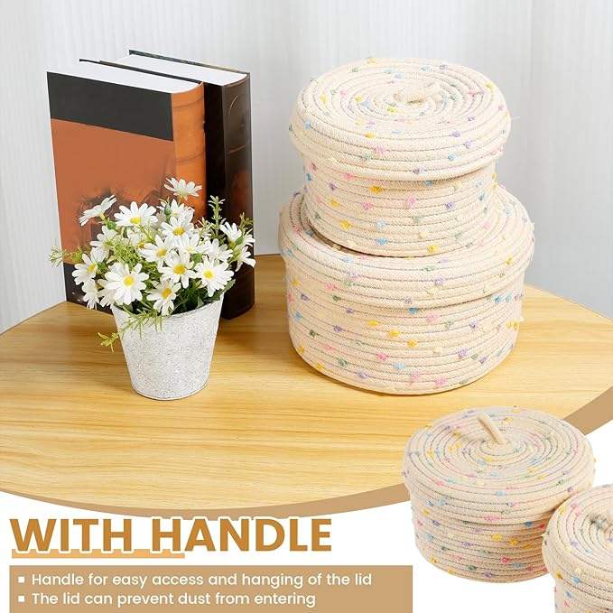Panier de rangement décoratif en corde de coton tressée, écologique et moderne, avec couvercle, grande capacité, organisateur de bureau et multi-usages