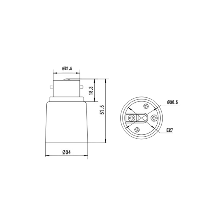 Nom du produit:Prise adaptateur de support de lampe à baïonnette E27 à b22