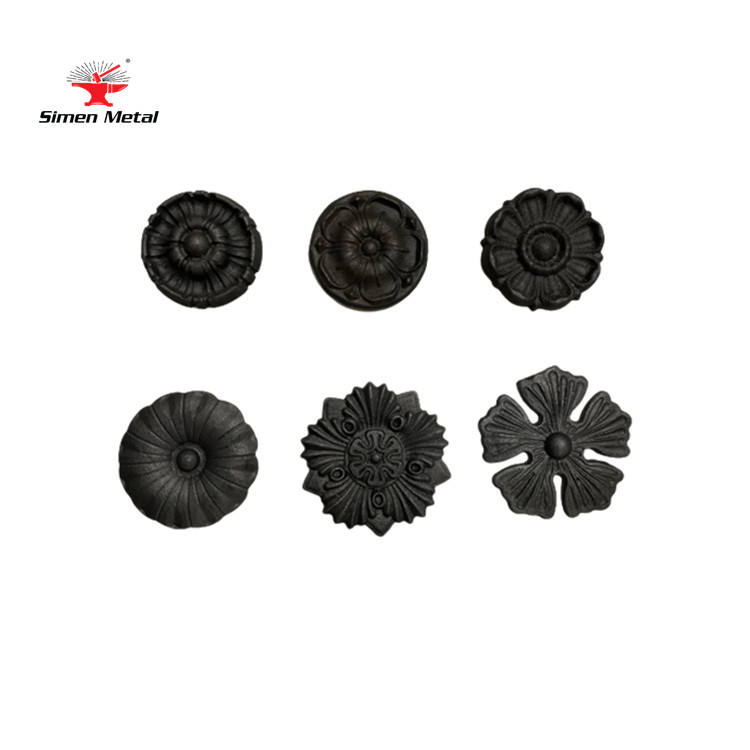 Composants décoratifs de clôture en fer forgé : Fleurs ornementales estampées en acier – Accessoires de clôture d'inspiration naturelle européenne