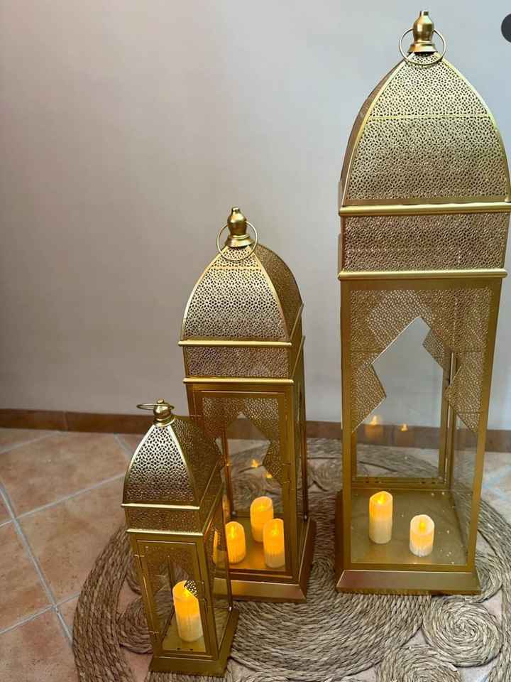 Lanterne de sol décorative au design unique avec finition dorée Ramadan Eid Hajj Festival Vaisselle de fête décorative Décoration de table élégante