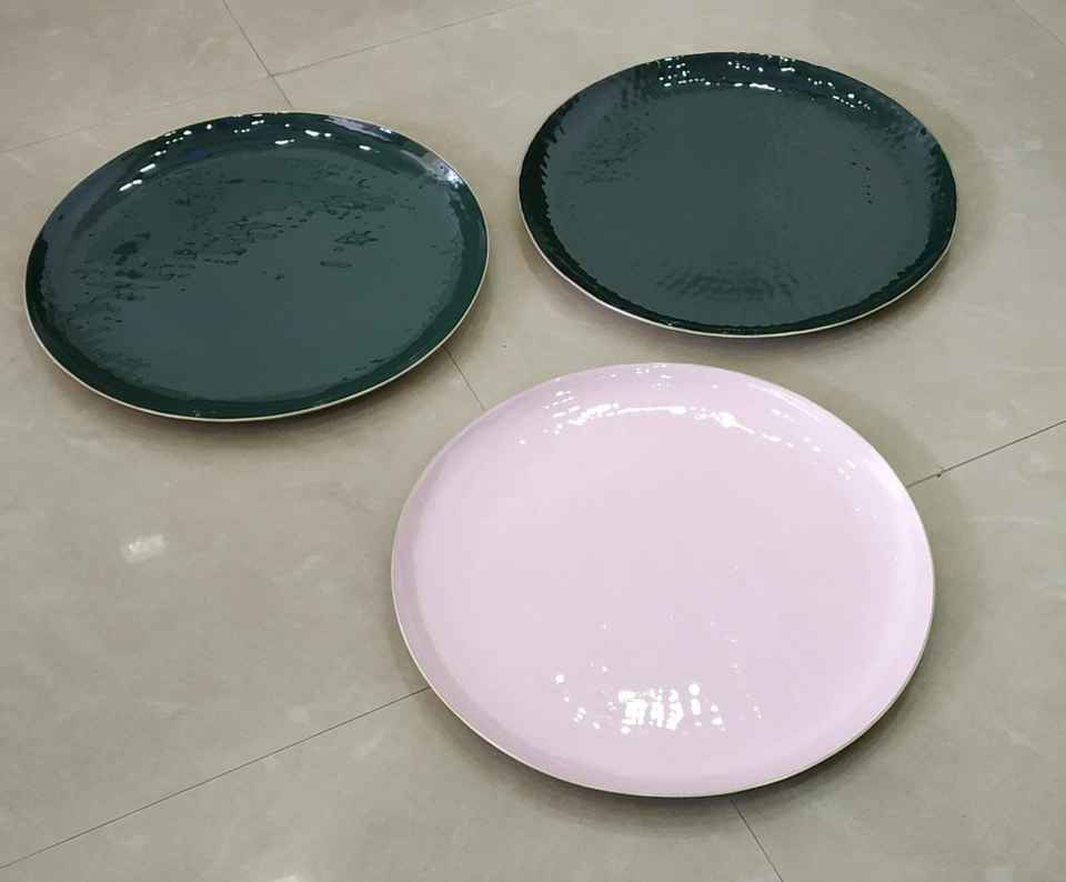 Nom du produit:Plateau de service rond en émail massif plaqué or