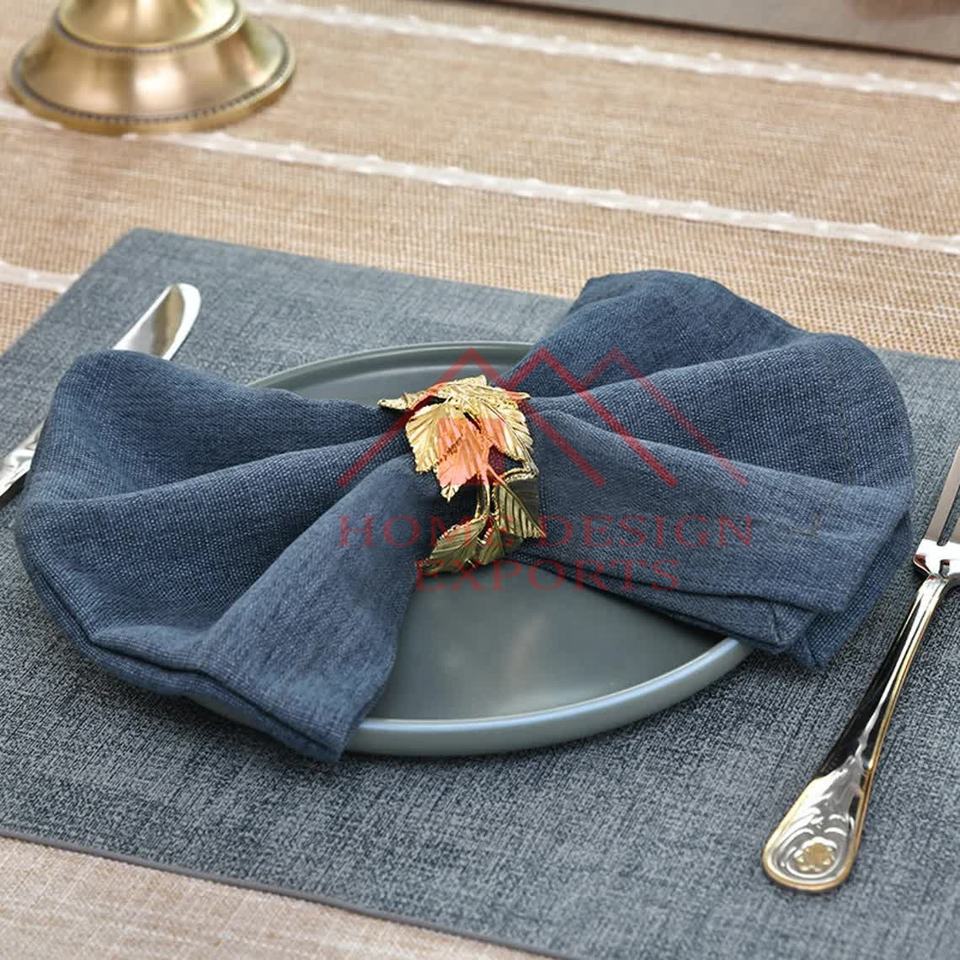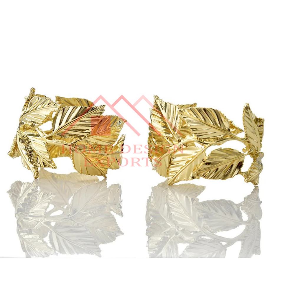 Rond de serviette doré unique pour décoration de table de fête de mariage meilleur vendeur Rond de serviette décoratif en feuille de fleur dorée