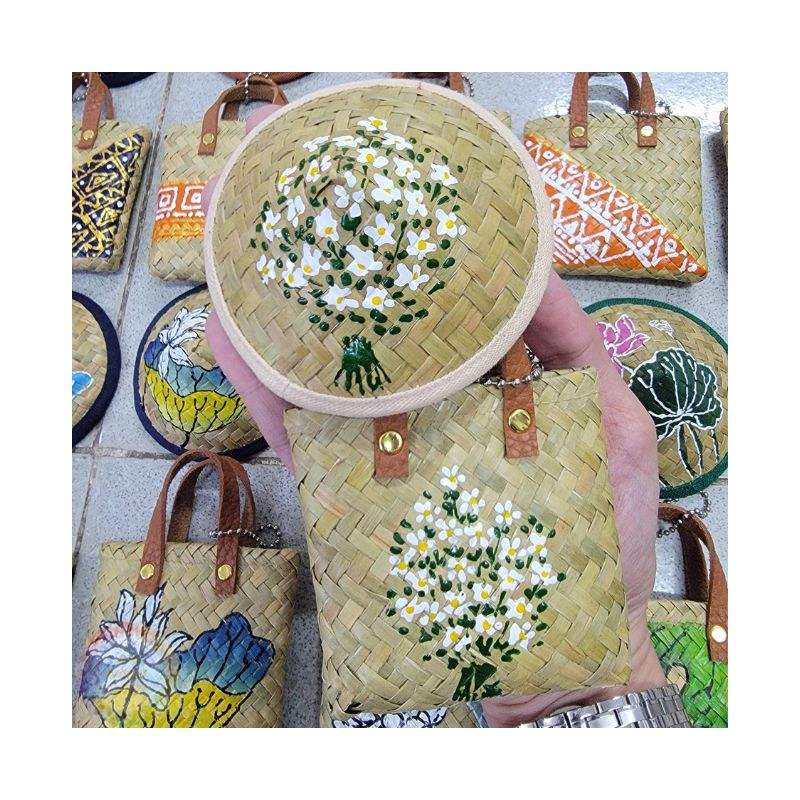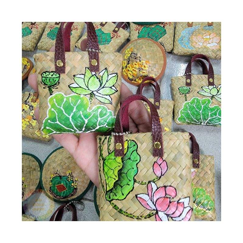 Porte-clés décoratif en fibre de herbe, artisanat en herbe de jonc naturelle, idéal pour souvenir, fabriqué au Vietnam