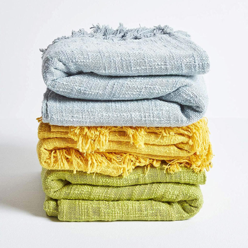 Jeté de canapé décoratif en coton avec détail tissé à rayures colorées et frange à pompon fabriqué en Inde pour les acheteurs à l'exportation