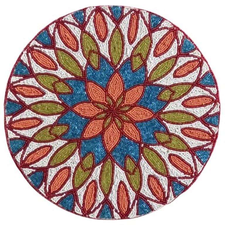 Decorative Handmade Embroidery Seed Beadwork Placemat 5mm Flower Shape Festive Events Home Use Custom Tablemat Coffee Dining