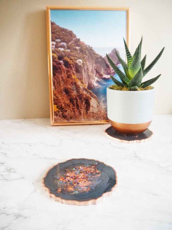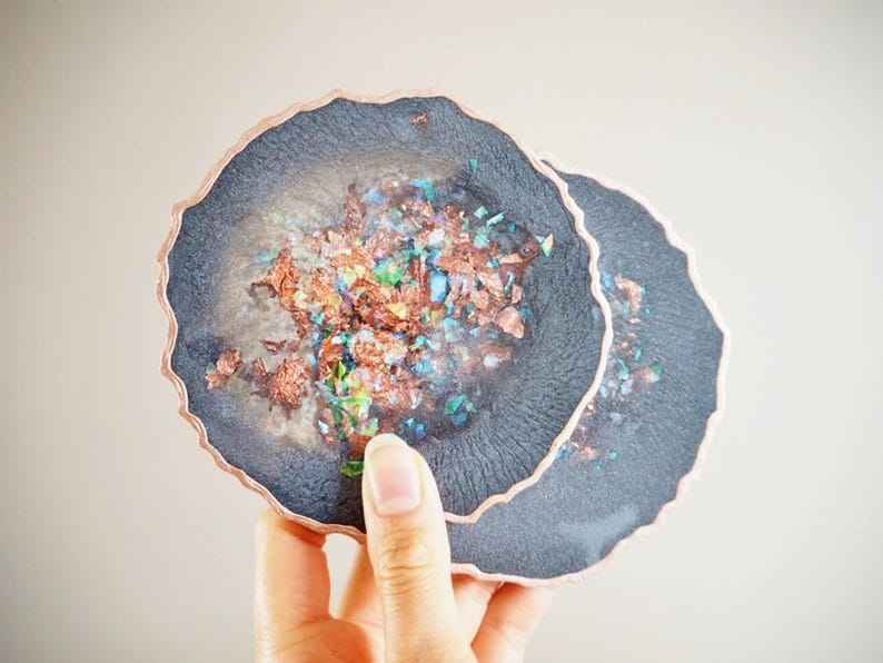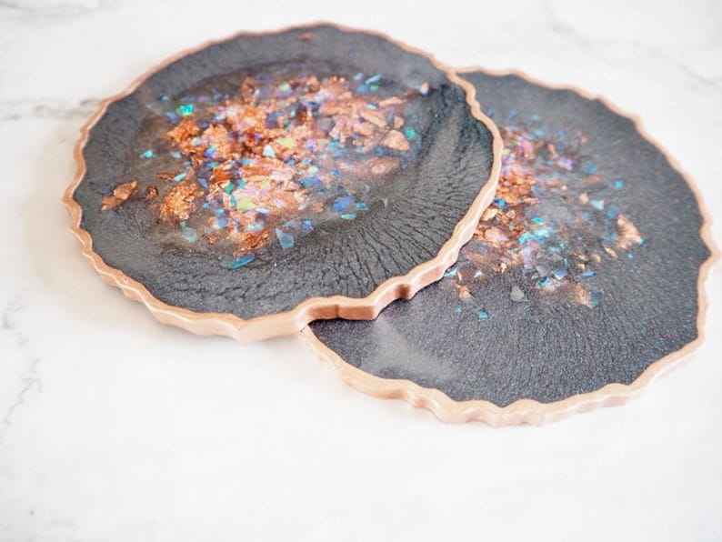 Sous-verre décoratif en résine fait à la main avec une finition lisse et polie et une résistance durable, idéal pour les tables de maison, de bureau et de café