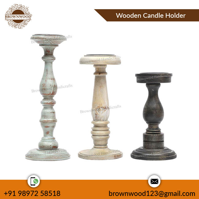 Ensemble de trois bougeoirs décoratifs multicolores en bois de manguier de haute qualité pour décoration à prix compétitif pour l'exportation