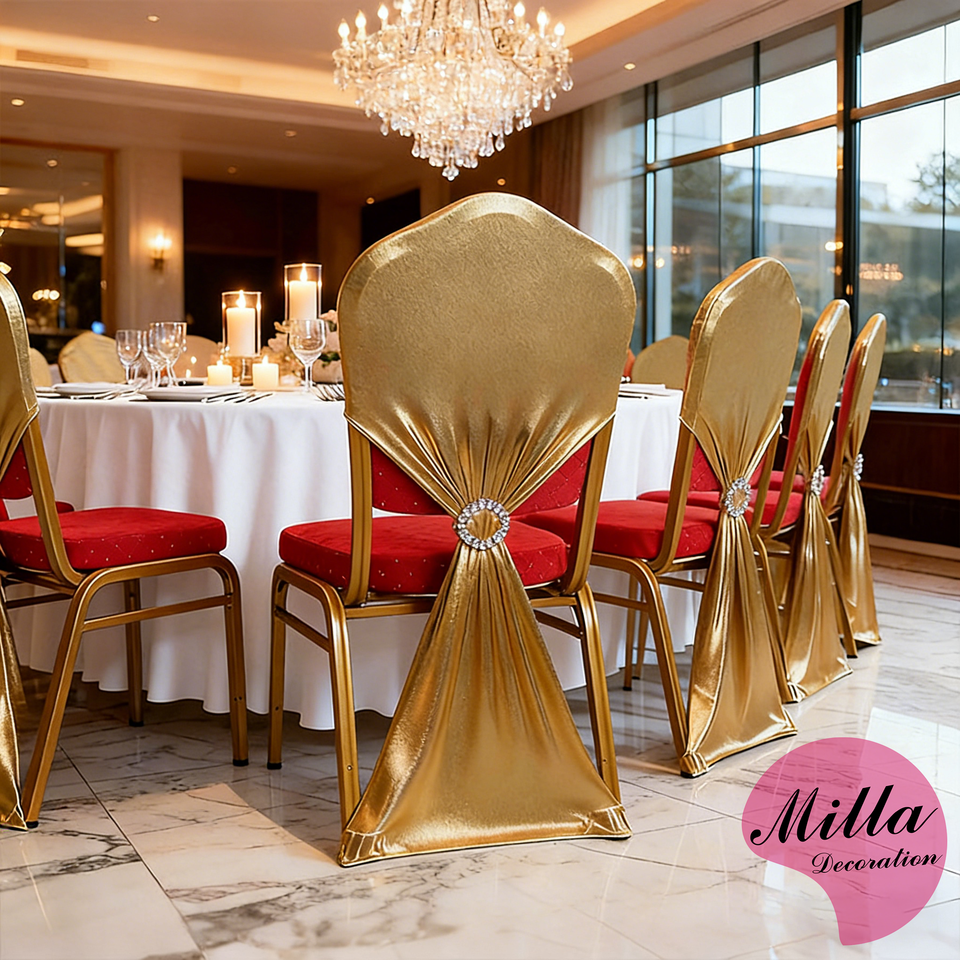 Housse de dossier de chaise décorative à anneau élastique, housse de chaise à nœud, sans lavage, estampage à chaud, housse de chaise en spandex métallique