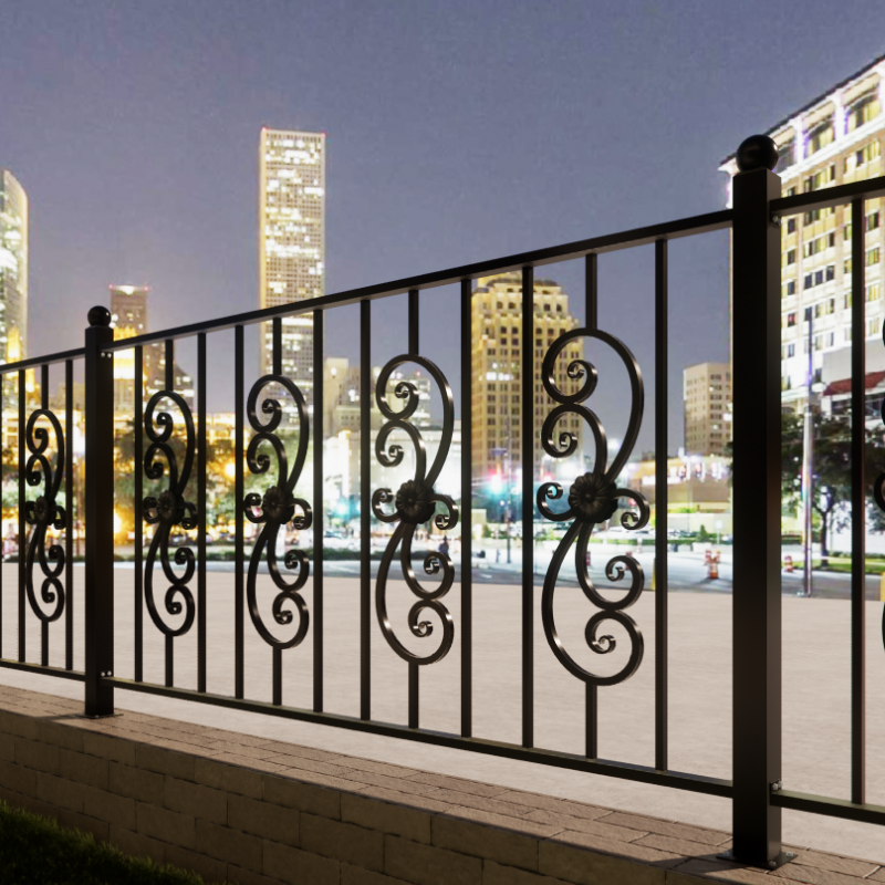 Rampe de balcon décorative en fer forgé sur mesure, rampe extérieure en fer forgé à la main, style moderne, revêtement poudré, structure robuste et durable