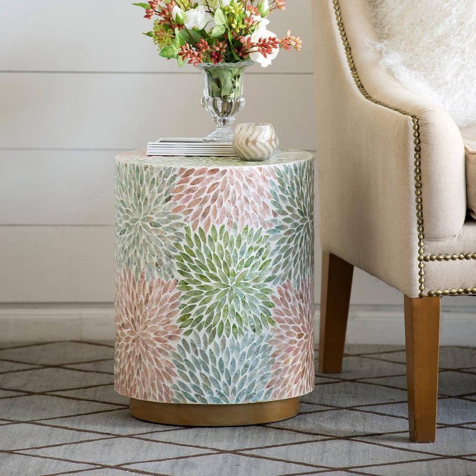 Table basse décorative en coquille de vadrouille pour le salon tables d'appoint en mosaïque table d'appoint en nacre