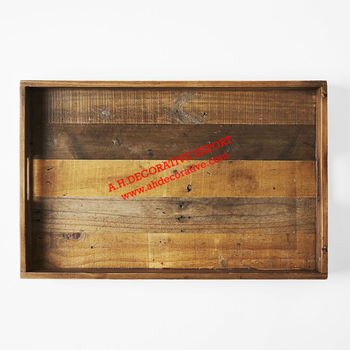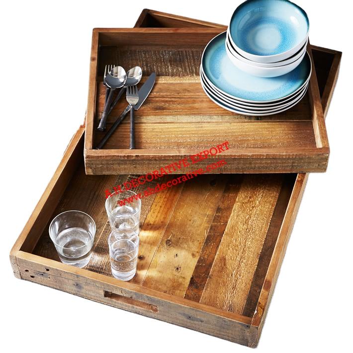 Haute qualité pour plateau de service en bois de mangue pour la décoration intérieure Qualité métal artisanat stockage en bois plateau d'aliments pour Table de mariage