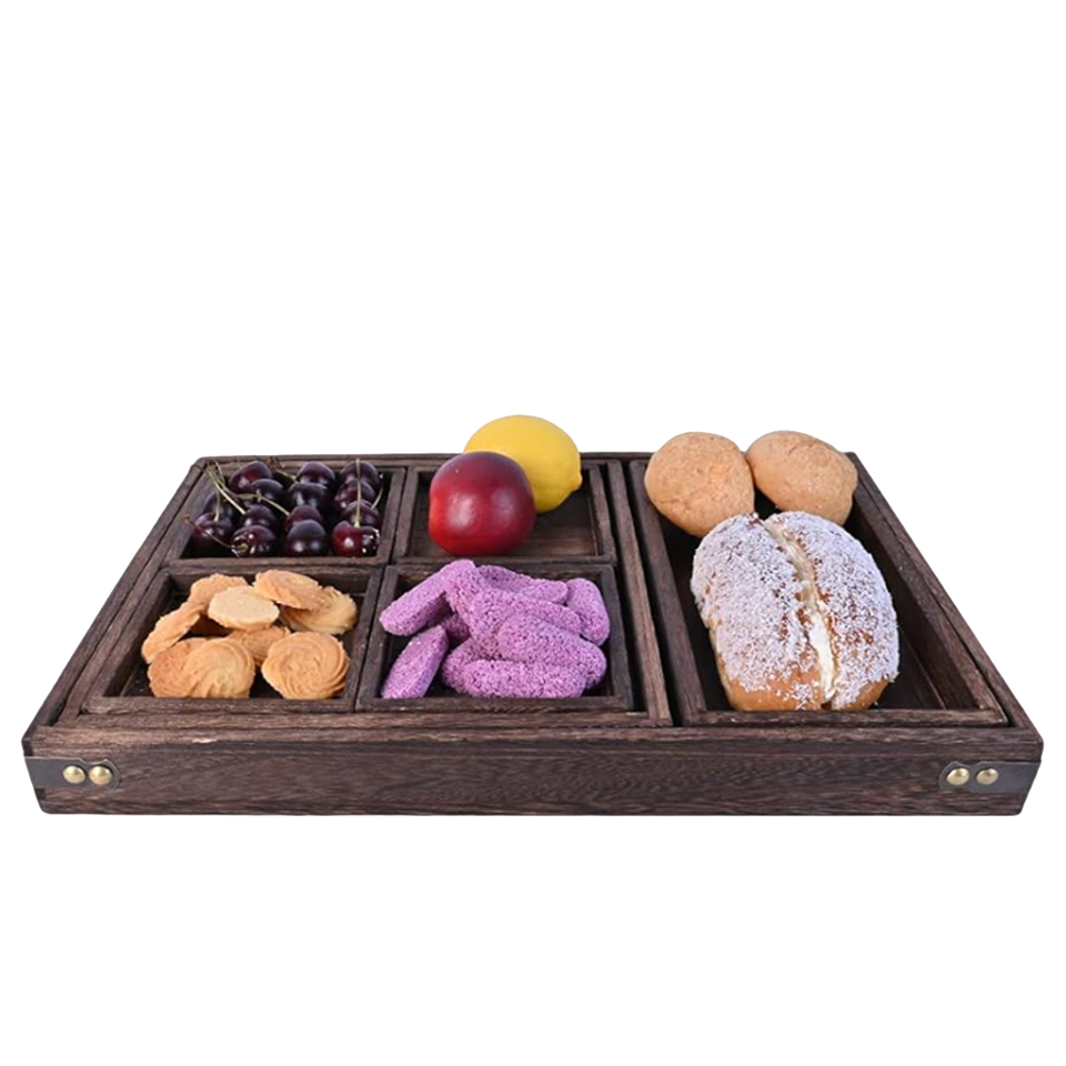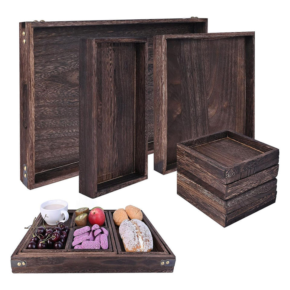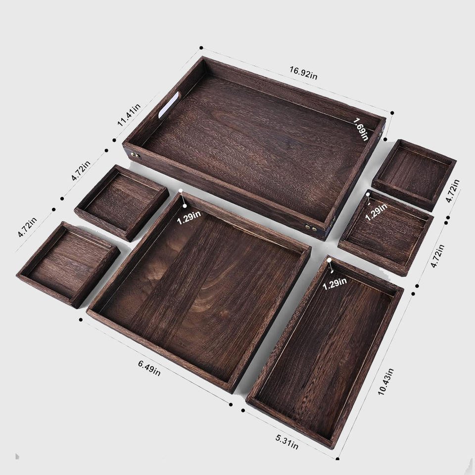 Nom du produit:Plateaux de service en bois de manguier avec poignées l lot de 7