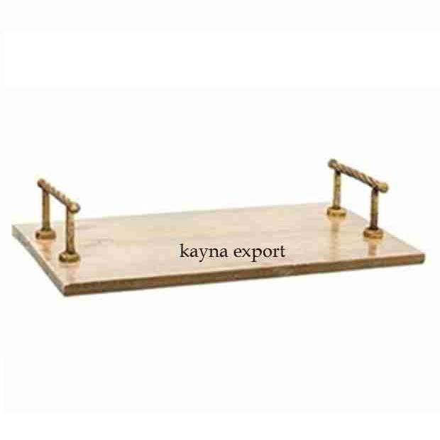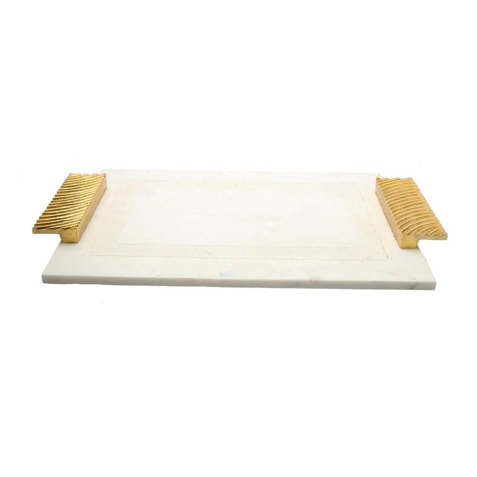 Plateau décoratif en marbre avec poignée au design moderne, style Art Déco, forme rectangulaire, artisanat métallique, mobile, pour la décoration de table à manger