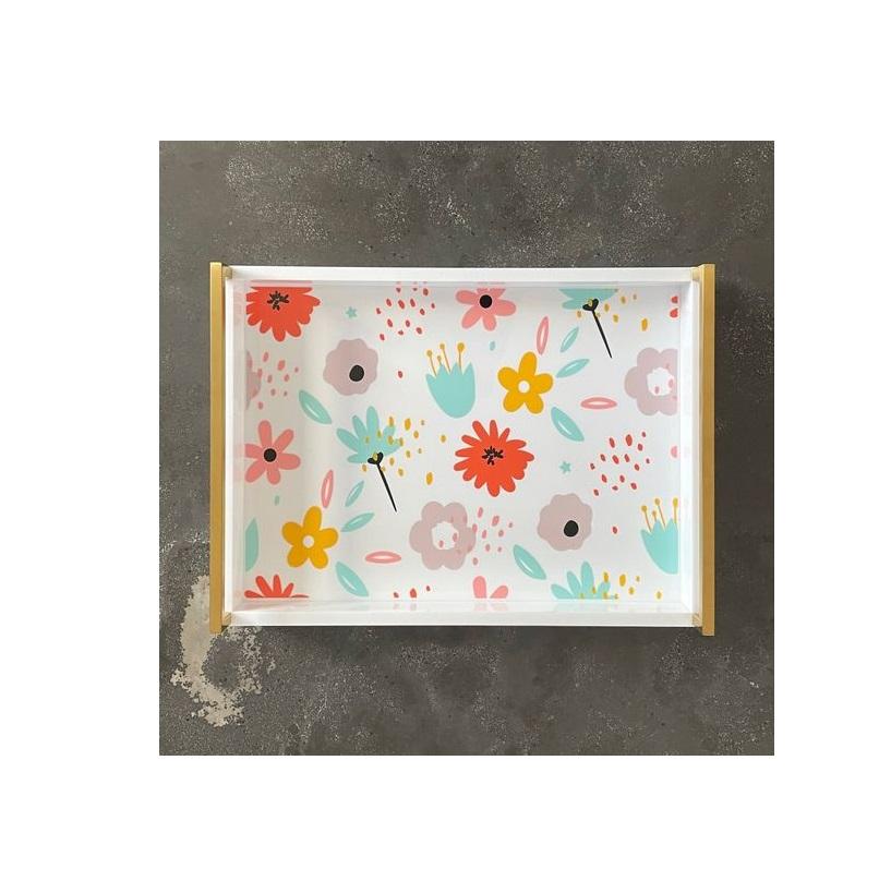 Plateau décoratif Meena, peint à la main en Inde, en bois d'acacia, écologique, luxueux, motif solide, couleur personnalisable, plateau de service durable