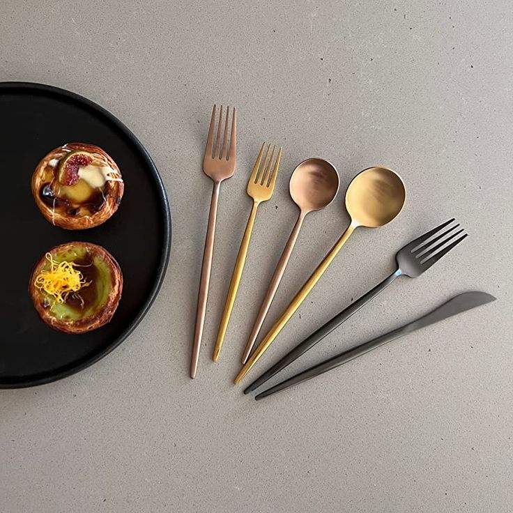 Ensemble de couverts décoratifs en métal avec poignée unique, parfait pour la présentation de la table à manger et la décoration intérieure moderne