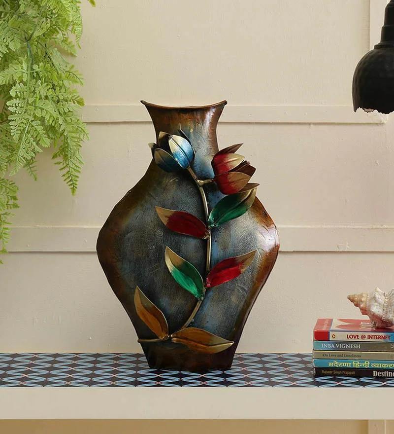 Vase à fleurs décoratif en métal, design feuille émaillée, pour la maison, l'hôtel, le salon, arrangement floral