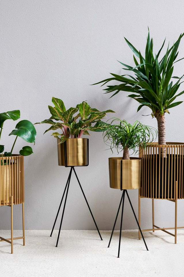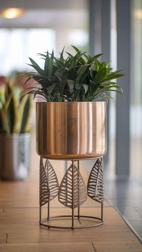 Jardinière en métal décorative avec support pour les intérieurs de la maison, conçue pour ajouter de l'élégance et un style contemporain
