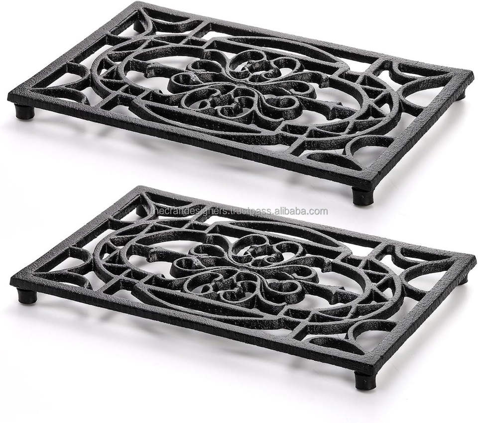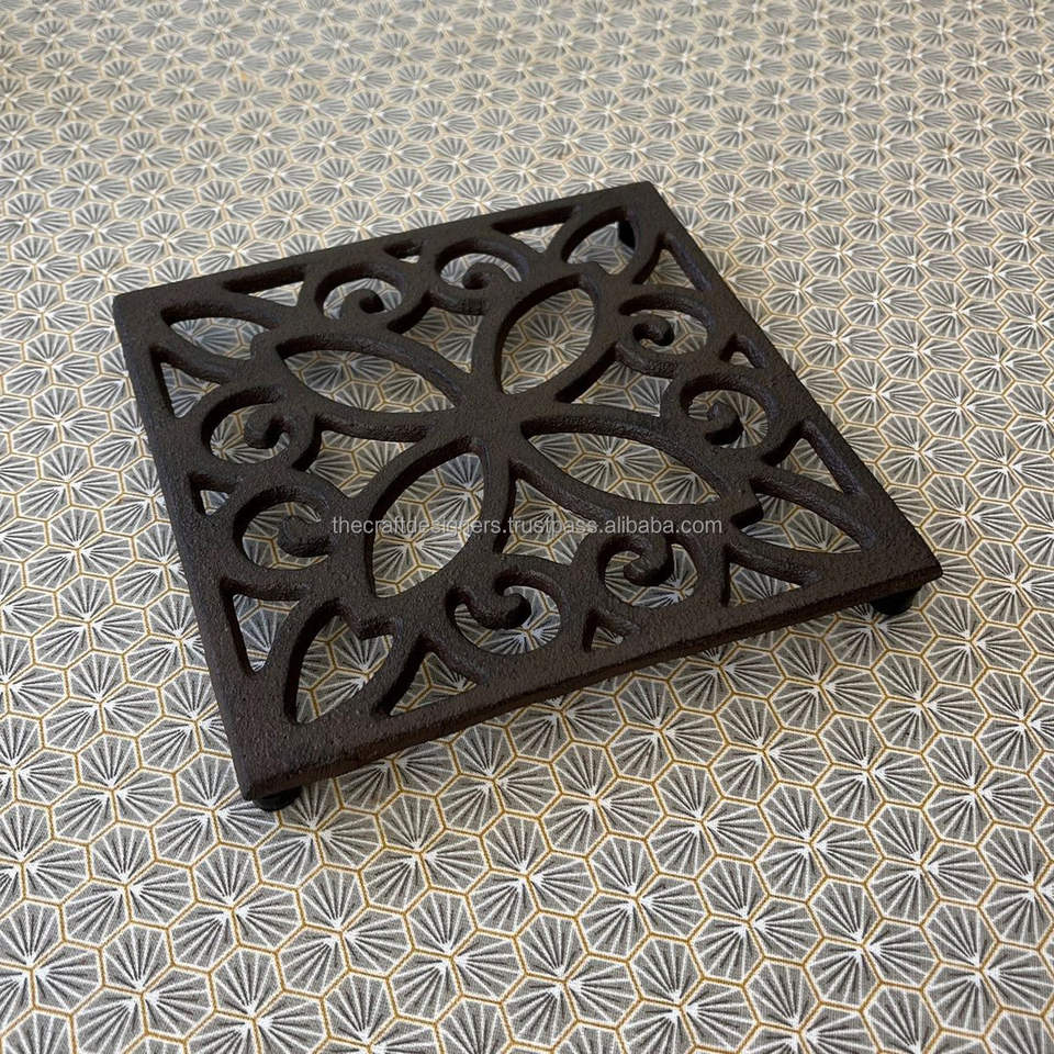 Dessous de plat décoratif sculpté en métal pour table à manger conçu avec des motifs complexes pour améliorer élégamment le style intérieur de la maison