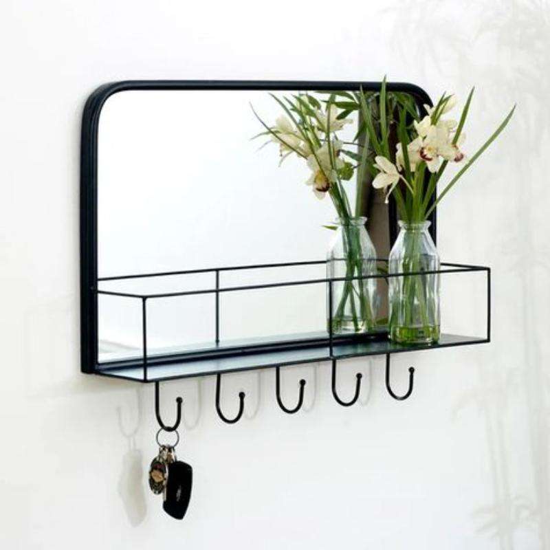 Porte-miroir mural décoratif en métal avec finition antique, idéal pour décor vintage