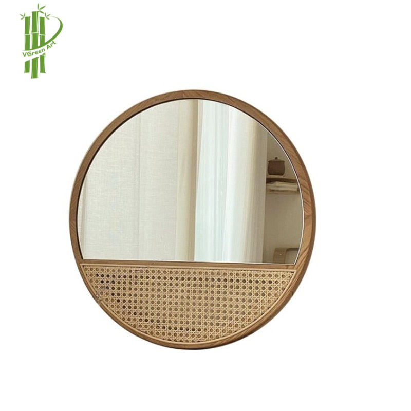Miroir mural carré en bois massif et rotin fait à la main Art déco décoratif Mobilier de maison au Vietnam 2022