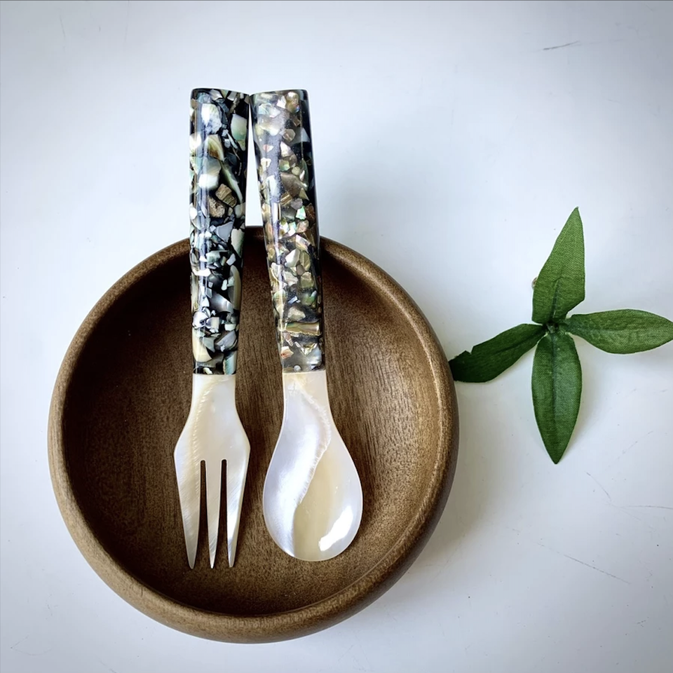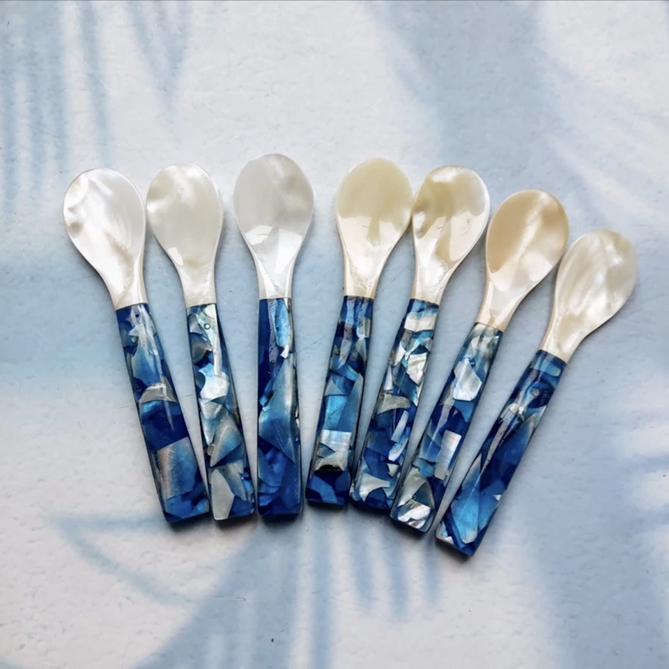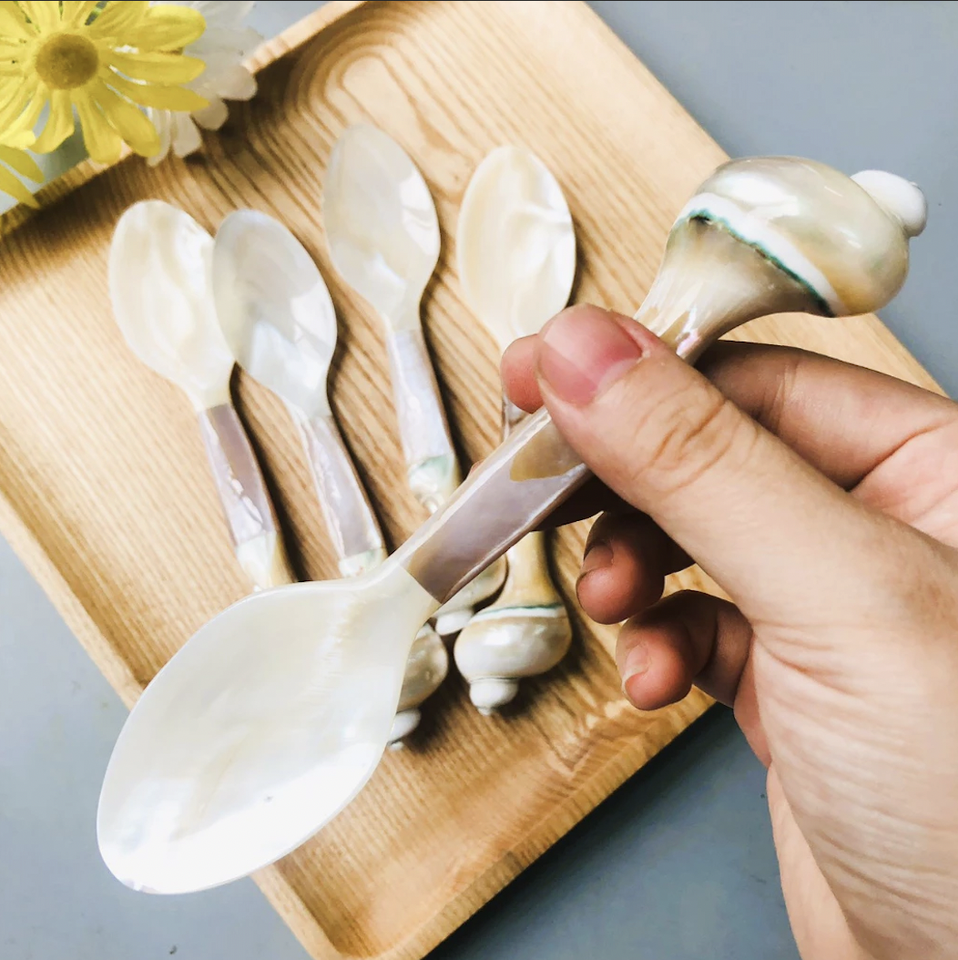 Decorative Mother of Pearl Spoon Vietnam Artisan Craft Perfect for Serving Salt Sugar or Gourmet Dishes
