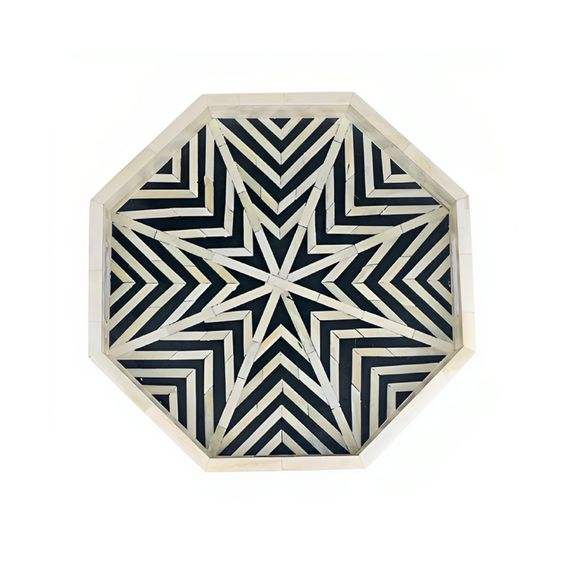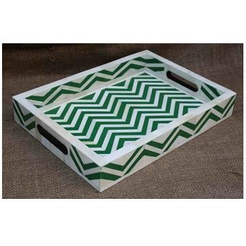 Plateau de service décoratif en résine époxy et incrustation d'os aux bords naturels avec poignée Organisateur d'hôtel à domicile Plateaux de petit-déjeuner à longue surface