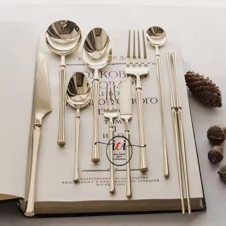 Nouvel arrivage de couverts décoratifs en métal Cuillère de luxe Couteau Baguettes pour la maison Mariage Cuisine Ustensiles en acier inoxydable