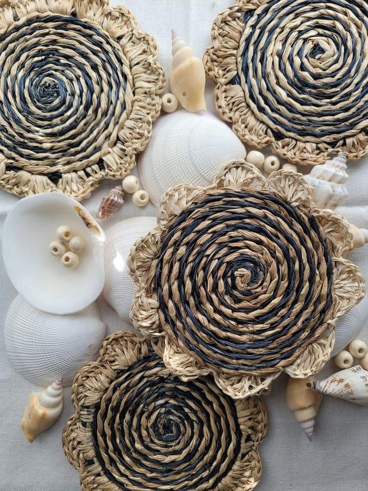 Sous-verre décoratif en rotin et raphia, fait main, en fibres naturelles, accessoire de table pour la salle à manger, les mariages et la décoration intérieure