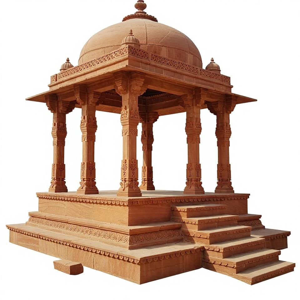 Pavillon indien sculpté à la main en marbre rouge décoratif, style ferme, avec dôme Chatri, pour projets de jardins, lacs, complexes hôteliers et palais