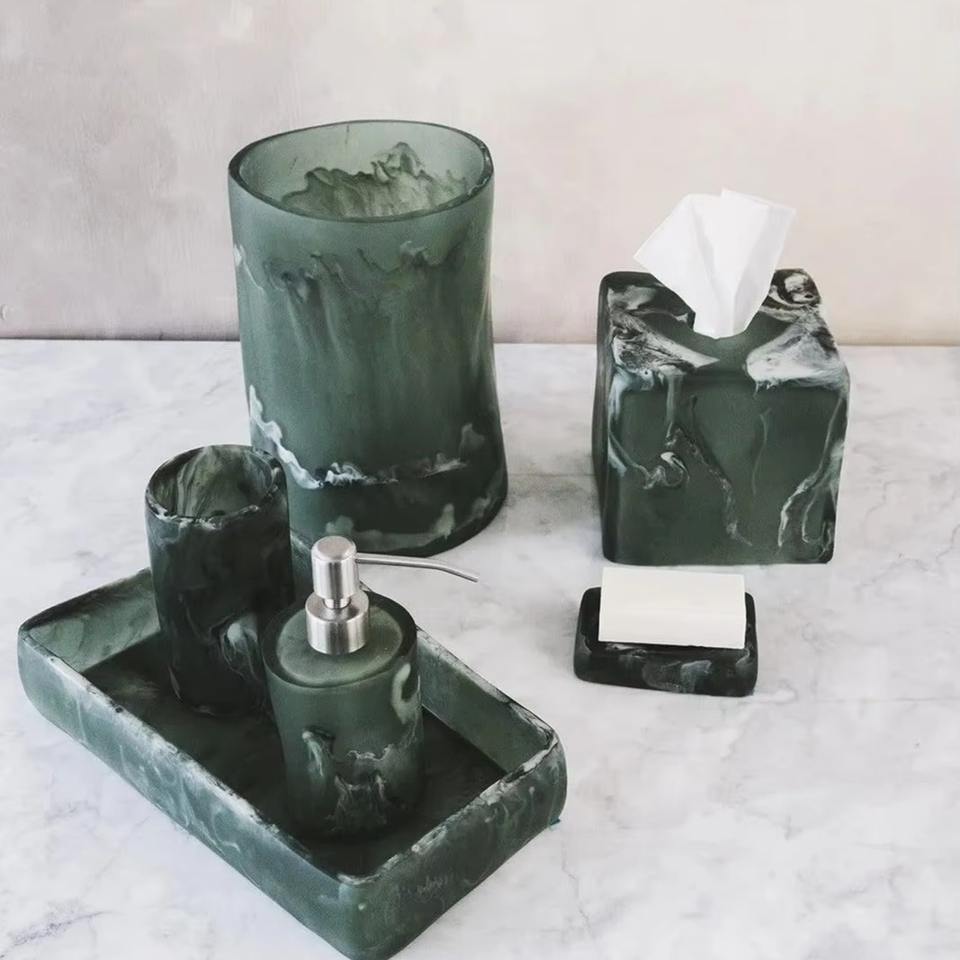 Ensemble de salle de bain décoratif en résine, 6 pièces, accessoires de salle de bain de luxe, distributeur de savon, porte-savon, utilisation à domicile ou à l'hôtel