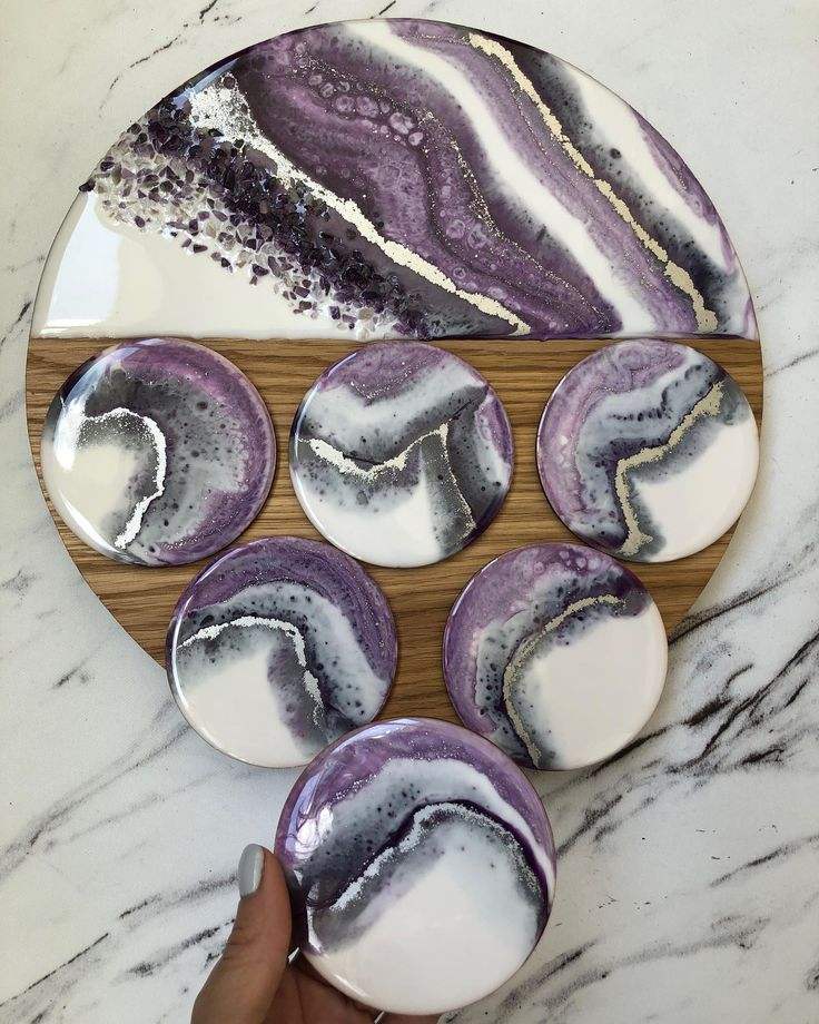 Ensemble de sous-verres décoratifs en résine avec motif en feuille d'or pour la décoration de table de salon moderne et la protection des verres à boisson