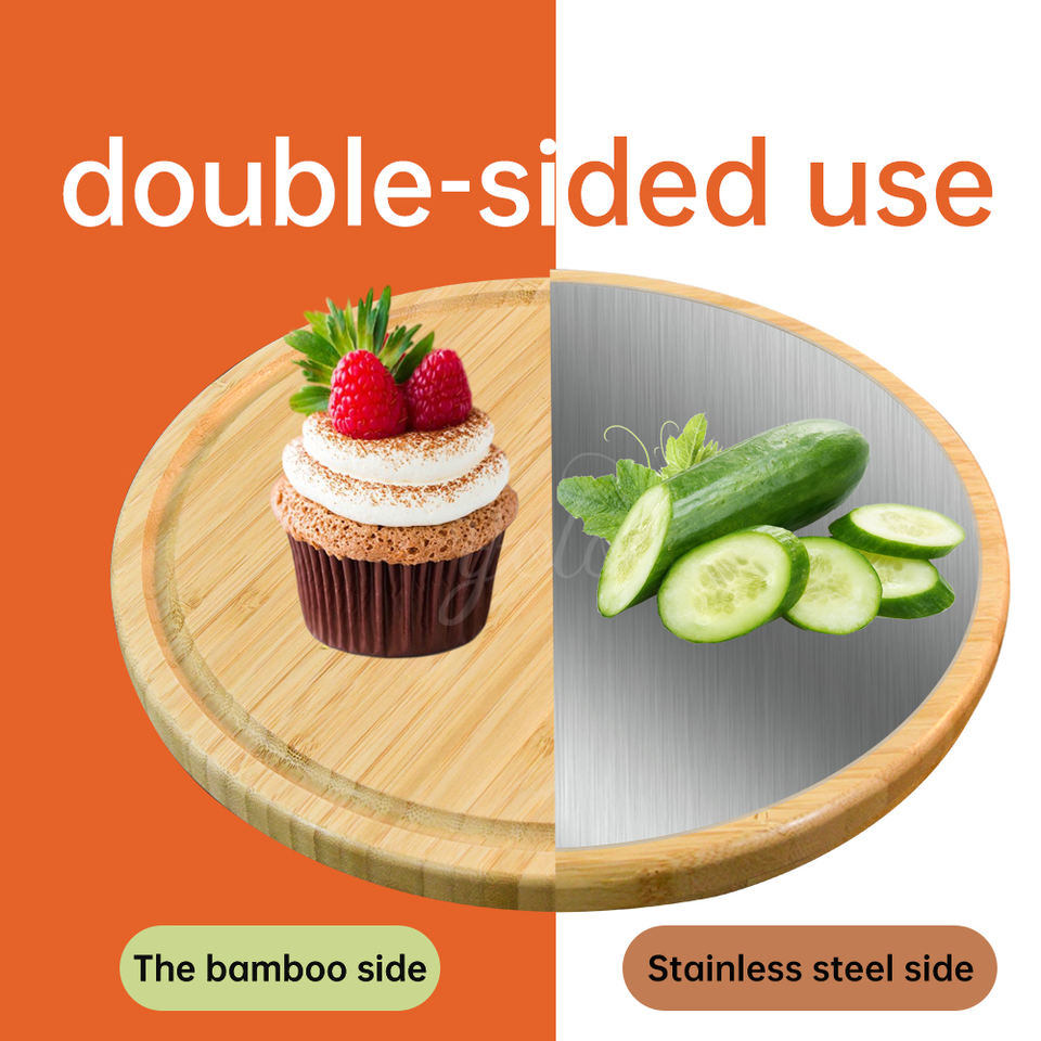 Nom du produit:Planche à découper ronde en bambou à double face en acier inoxydable