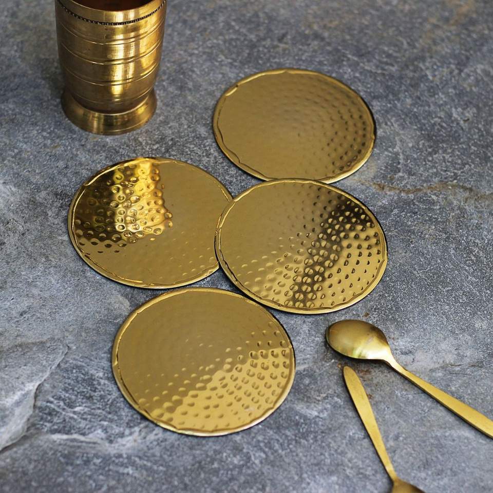 Ensemble de sous-verres ronds décoratifs en métal pour table basse, protection des verres à boisson, avec une décoration de table élégante