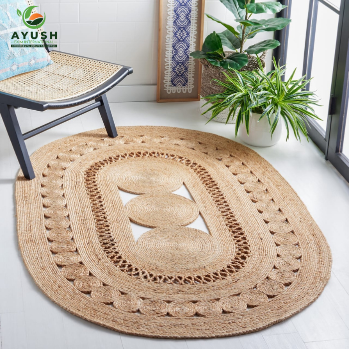 Ensembles et tapis décoratifs ronds et ovales en coton et jute disponibles avec logo personnalisé du fabricant pour maison d'hôtes bureau
