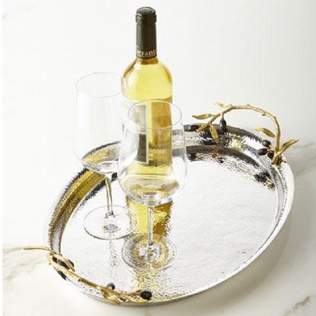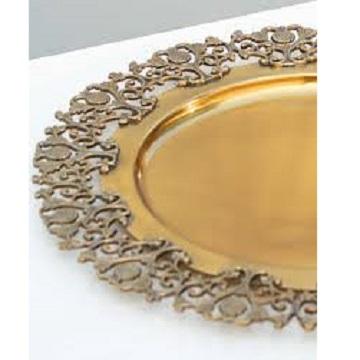 Forme ronde décorative Bords de designer Finition Métal Laiton Plateau de service Plats utilisés pour servir de délicieux plats à la maison et à l'hôtel