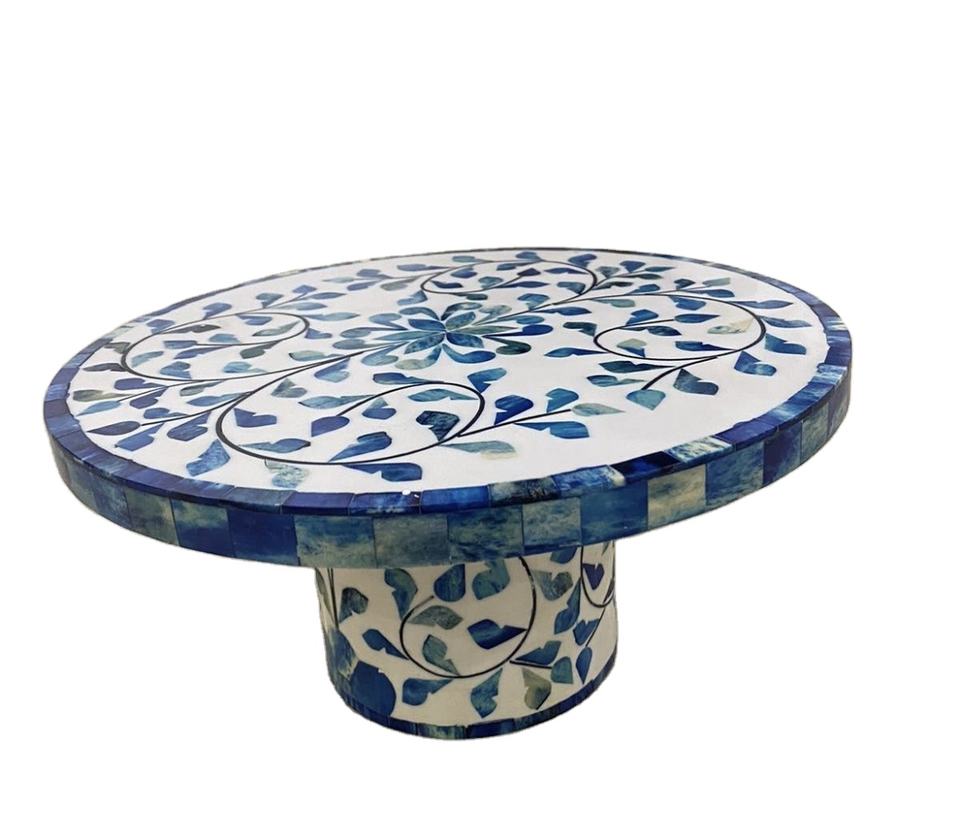 Support à gâteau rond décoratif en bois avec motif floral incrusté d'os Décoration moderne Support à chocolat Serveur à gâteau à prix abordable