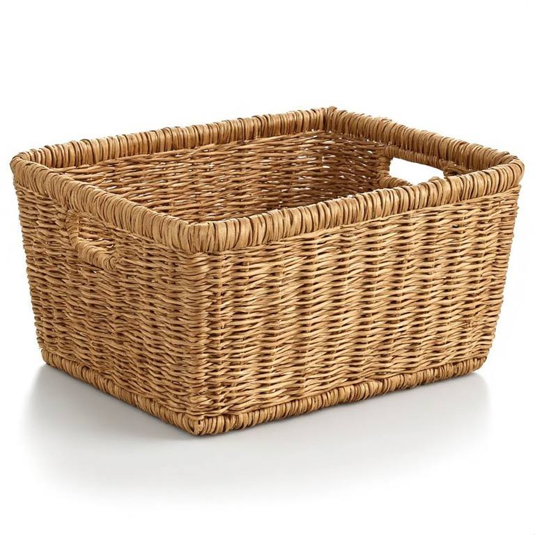 Panier décoratif rustique en jonc de mer naturel, conçu pour organiser les essentiels ménagers avec une beauté naturelle