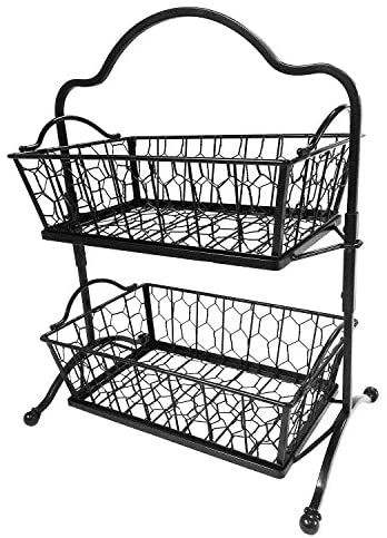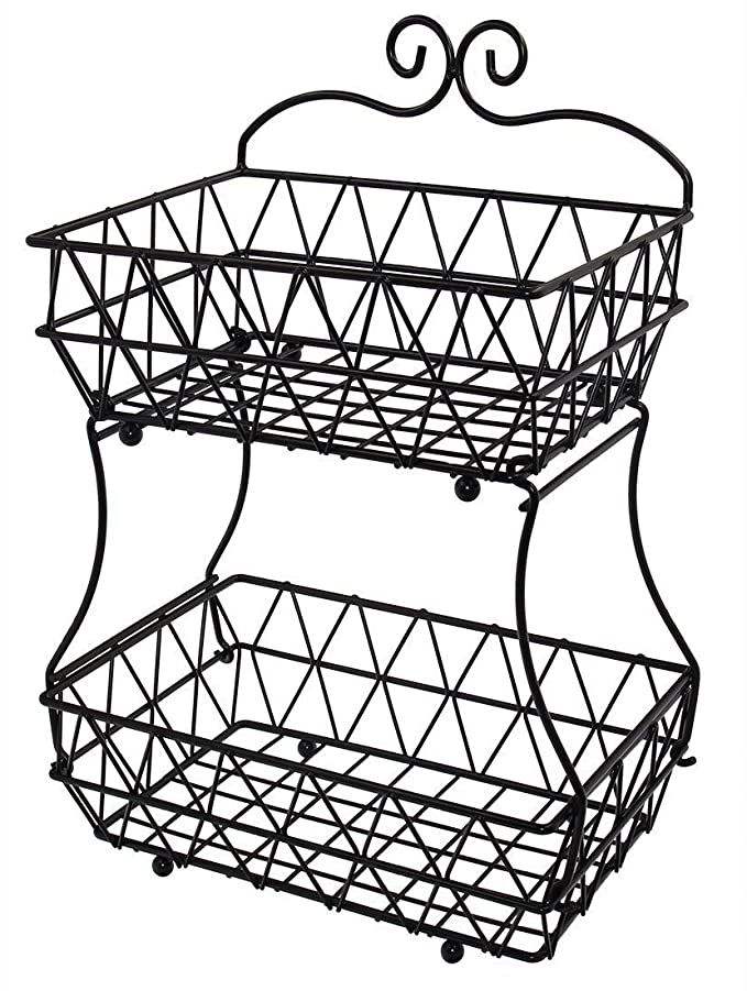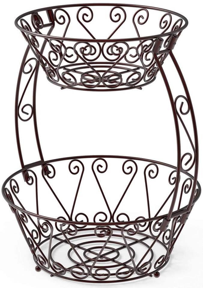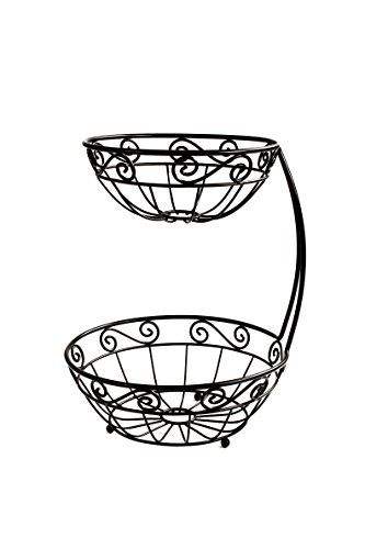 Panier à fruits vintage en métal noir à trois niveaux avec motif décoratif en spirale, écologique, pour une décoration élégante de la cuisine et de la maison, rangement et présentation