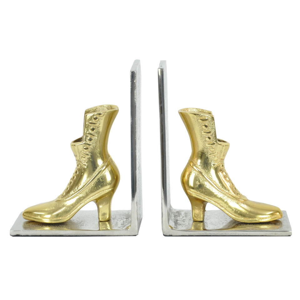 Porte-livres décoratifs sculpturaux dorés style botte d'équitation, 2 pièces, faits à la main, support de livres de table, décoration de salon et de maison