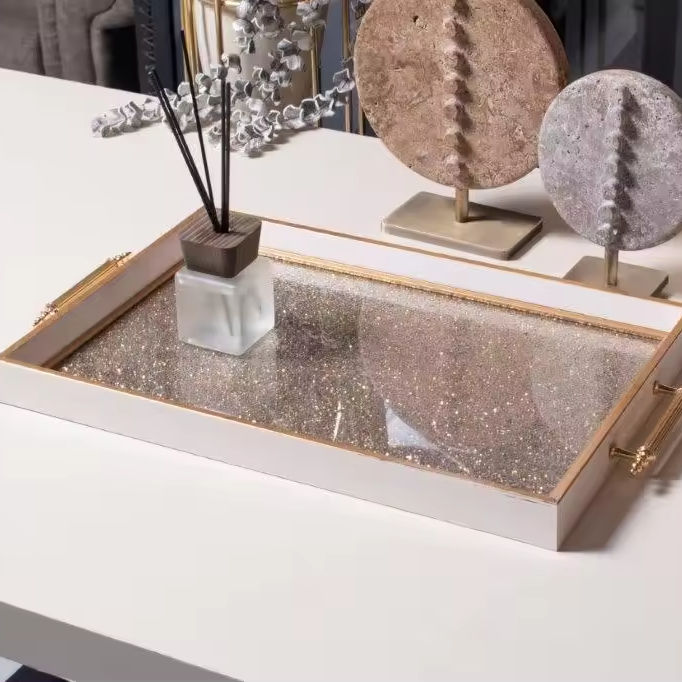 Vente directe d'usine conception personnalisée plateau de service en verre décoratif avec poignées pour la décoration de table à la maison utilisation dans la cuisine