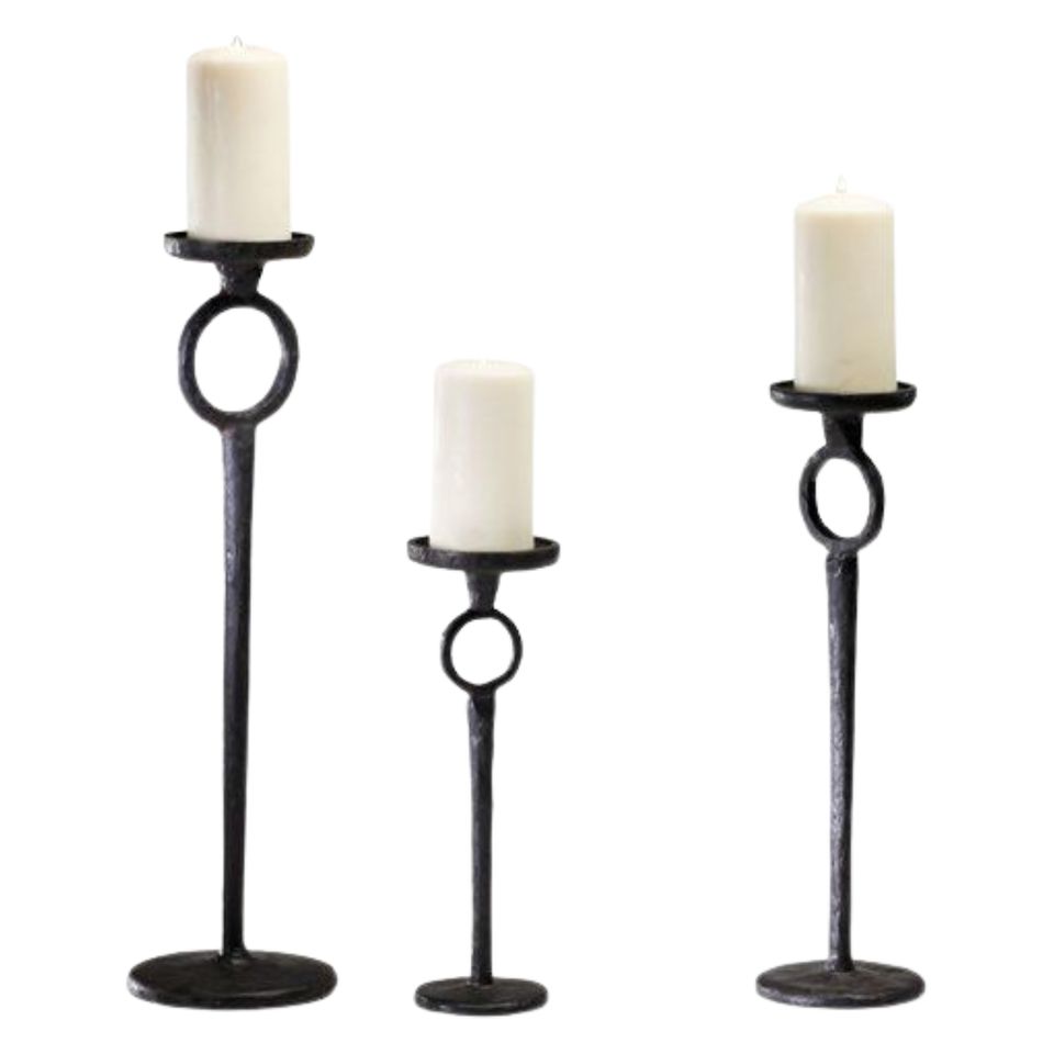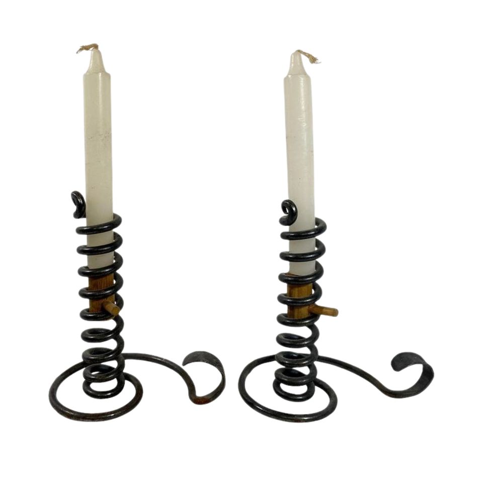 Ensemble décoratif de 2 porte-bougies en fer fini noir mat avec revêtement en poudre pour la décoration de chambre à coucher et l'éclairage